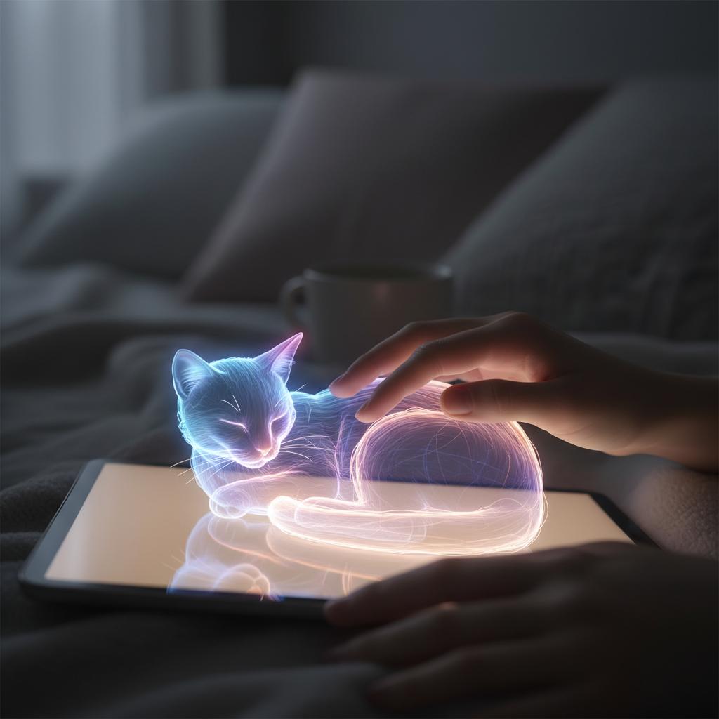 AR und VR holen die KI-Katze ins Wohnzimmer, auf den Küchentisch oder ins Kinderzimmer. Schon heute interagieren Kinder mit holografischen Katzen, die spielerisch durch den Raum springen, schnurren und auf Zuruf reagieren.
